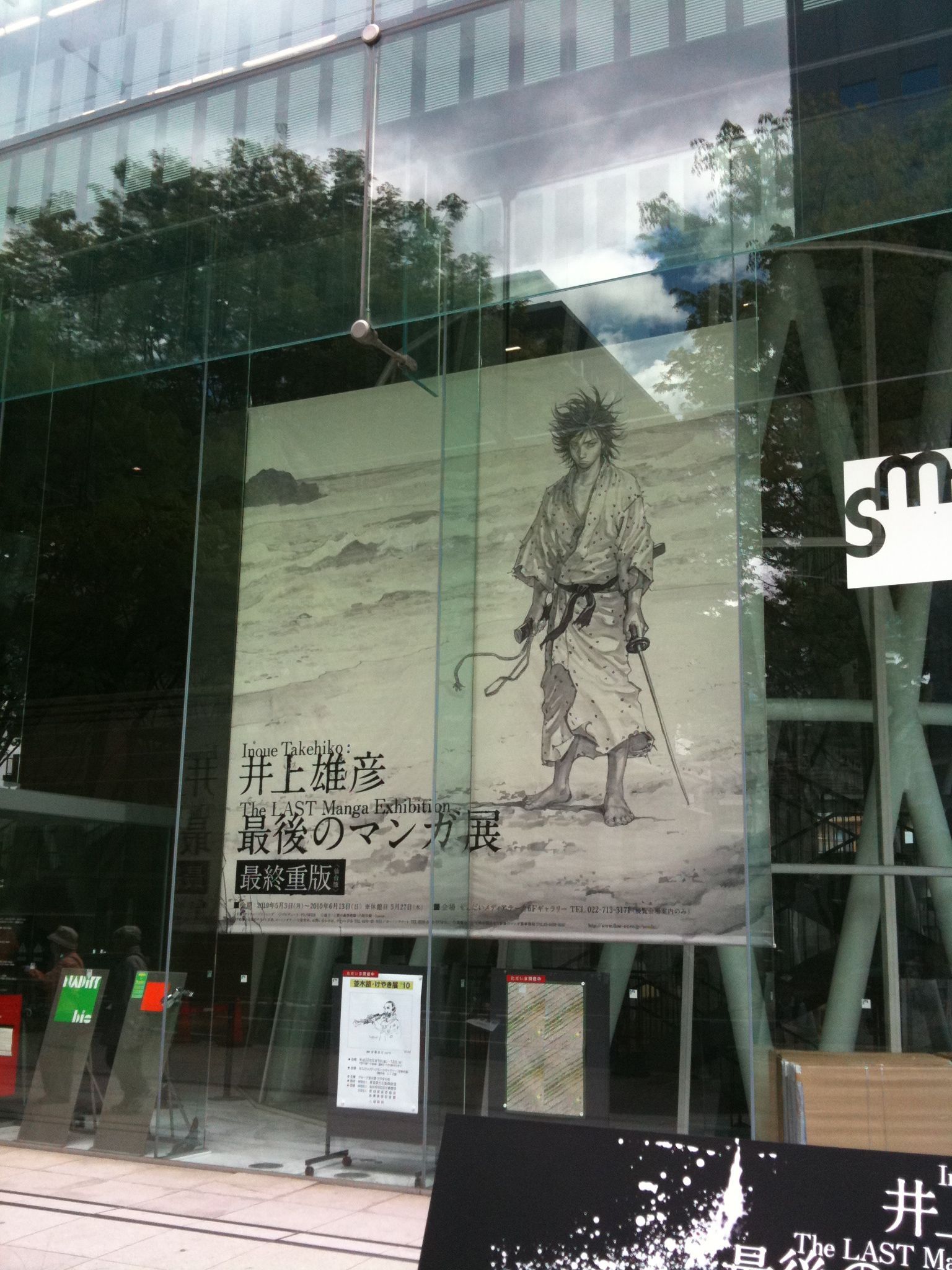 たまたまこのタイミングで井上雄彦展が仙台で行われていると言う事で、近所のサンクスで予約してホテルからタクシー・地下鉄と乗り換えて会場であるせんだいメディアテークに到着しました。10時からだったのですが、10時ちょうどに会場の6階に行くと既に行列が出来ていました。20分くらい待った後で中に入ることが出来ましたが、中に入ってからは後から人が押し寄せてくることもなく、最初は前の人が律速になっていたものの、途中から自分のペースで先に進むことが出来、良い感じで見ることが出来ました。見終わった後の売店ではかみさんと娘2号がバガボンドのグッズを買っているなか、自分はスラムダンクの10日後完全版を選びました。バガボンドはまだちゃんと読んでいないとは言え、やはり自分にとってはスラムダンクです。