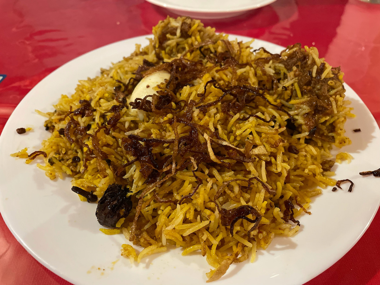 晩御飯は諸般の事情により「インディアンハット」で食べることになりました。この店は初めて入ることになります。時間もあまり無いしセットだと量も多いだろうと、単品でマトンビリヤニ、マトンカレー、パラックパニールを注文。ラッシーはサービスでついてくるようです。マトンビリヤニは最近食べたビリヤニとは違い本格的な(?)ピリ辛ビリヤニでした。量的にはビリヤニではなくナンを二人で一枚にしたほうが良かったのでしょうが、やはり新しい店に入ったらビリヤニを試してみないといけません。