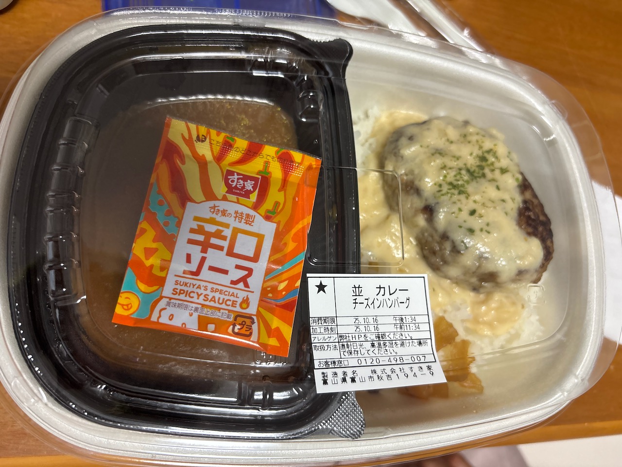娘2号のアパートに行く途中ですき家に寄ってお持ち帰り。自分はすき焼き牛丼にしようと思っていたのですが、ネット注文の画面に出てこず仕方なく牛丼大盛りを、かみさんたちからはハンバーグカレーご飯少なめを頼まれていたのでそれを2個注文してからすき家に向かいました。かみさんたちのチーズインハンバーグカレーのシールが「並」とあったので間違ってご飯少なめを並盛りにしたのかと思ったのですが、ご飯少なめは並盛りと同じ金額なので並盛りと同じシールになっていたのかもしれません。あとからすき家のホームページを見てみるとすき焼き牛丼が表示されていました。不思議に思い試しにWEB弁当オーダーに進んでみるとやはりすき焼き牛丼が表示されません。期間限定の終売ならば仕方がありませんが、なんとも納得がいかない感じです。