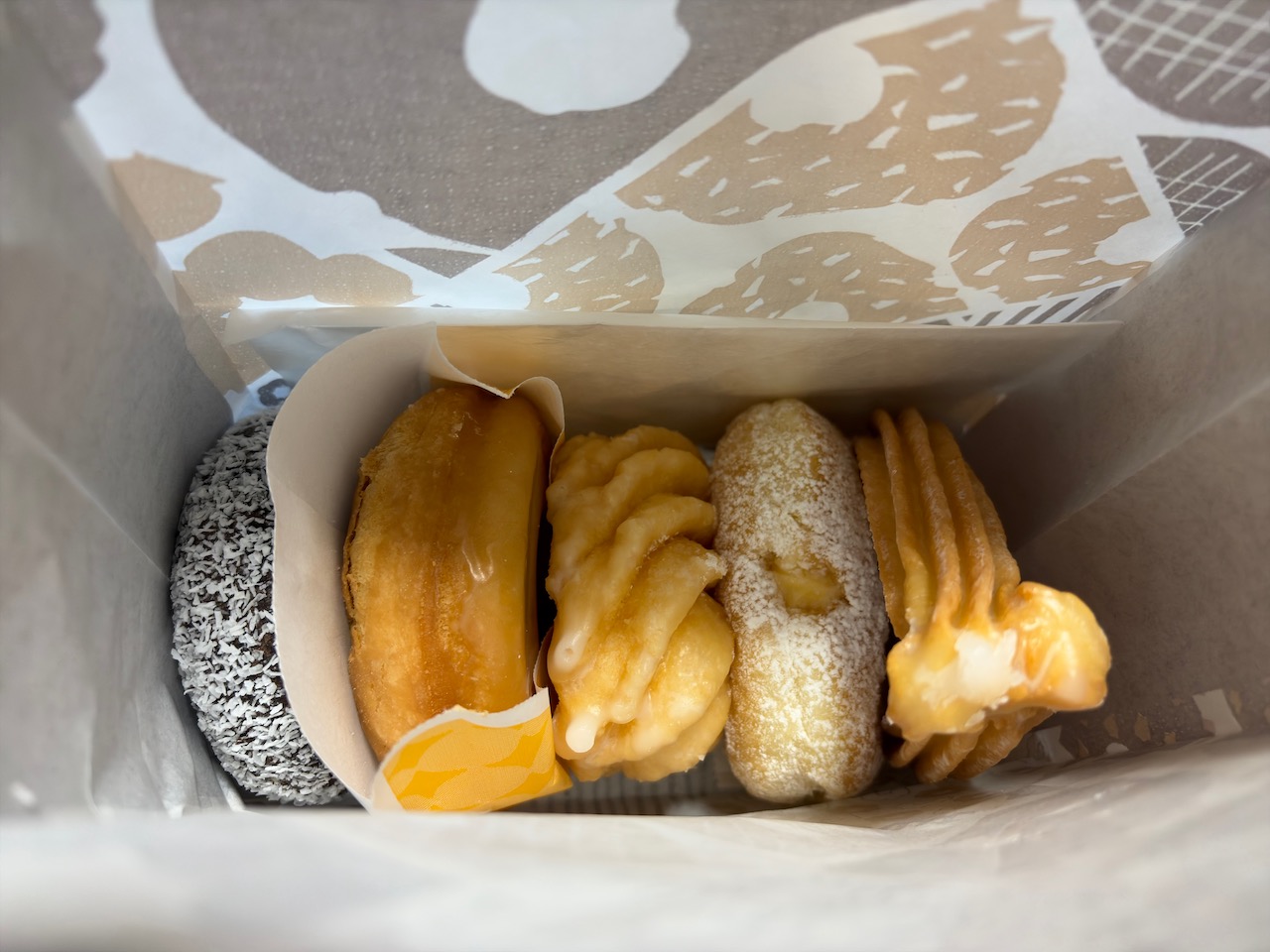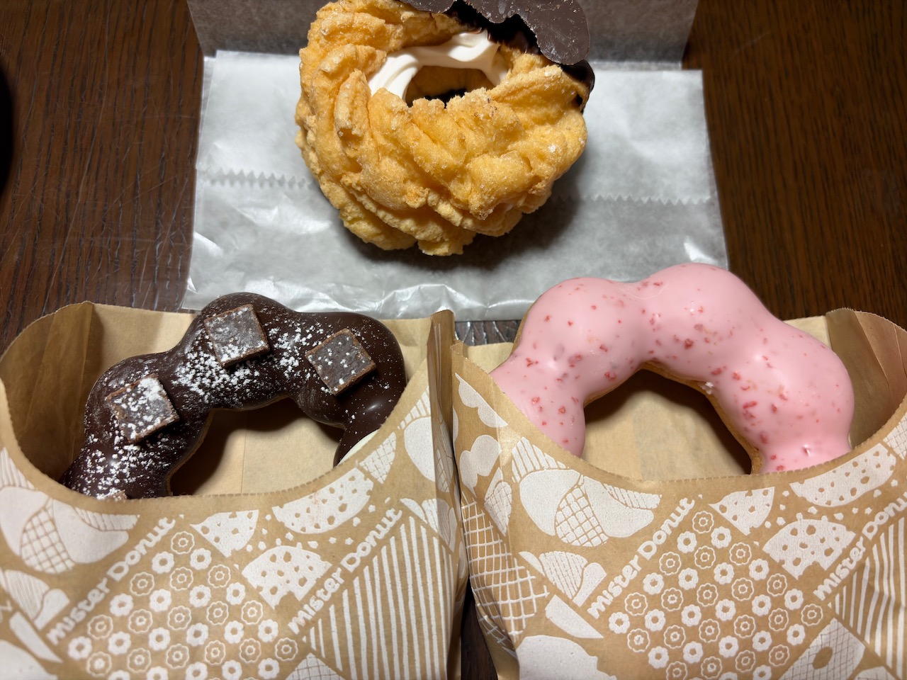 食べ物&飲み物 ミスタードーナツ 2025 / 12 / 19 NK コメントする 一昨日近所に新規オープンしたミスタードーナツ。開店初日は大行列で断念したのですが、昨日おばあちゃんが行ってみるとほとんど客は入っていなかったとの事。今日の午前にかみさんと娘2号たちが行ってみてもやはり初日の大行列はなんだったのかと言うくらいの状況だったようです。イートインコーナーも広く飲茶も提供しているとの事で、近いうちにイートインでまったりしに行くことになりそうです。 昨日のドーナツ 今日のドーナツ