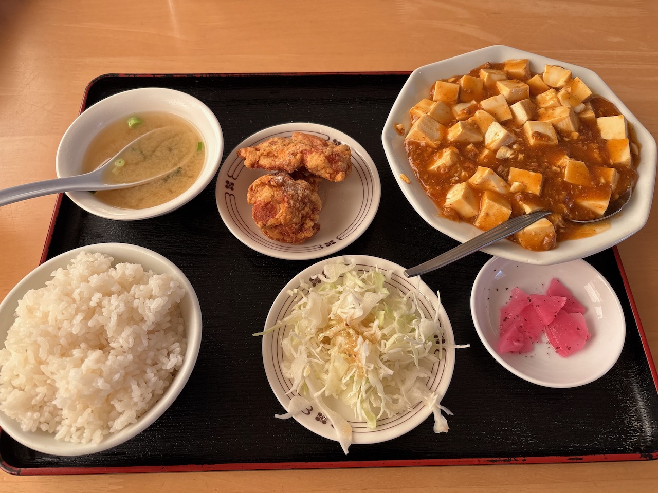 月に一度のかみさんと娘1号の待ち合わせランチの日なのでおひとりさまランチです。今日は素直に多喜屋にしました。Aランチは麻婆豆腐なのでどうしようかと思いましたが、小ラーメンありのBランチだとちょっと多い感じになってしまうのでAランチにしました。自分の前に一人ずつの2組の先客がいましたが、その後続々とお客さんが入ってきて店を出る時には6組のお客さんが入っていました。