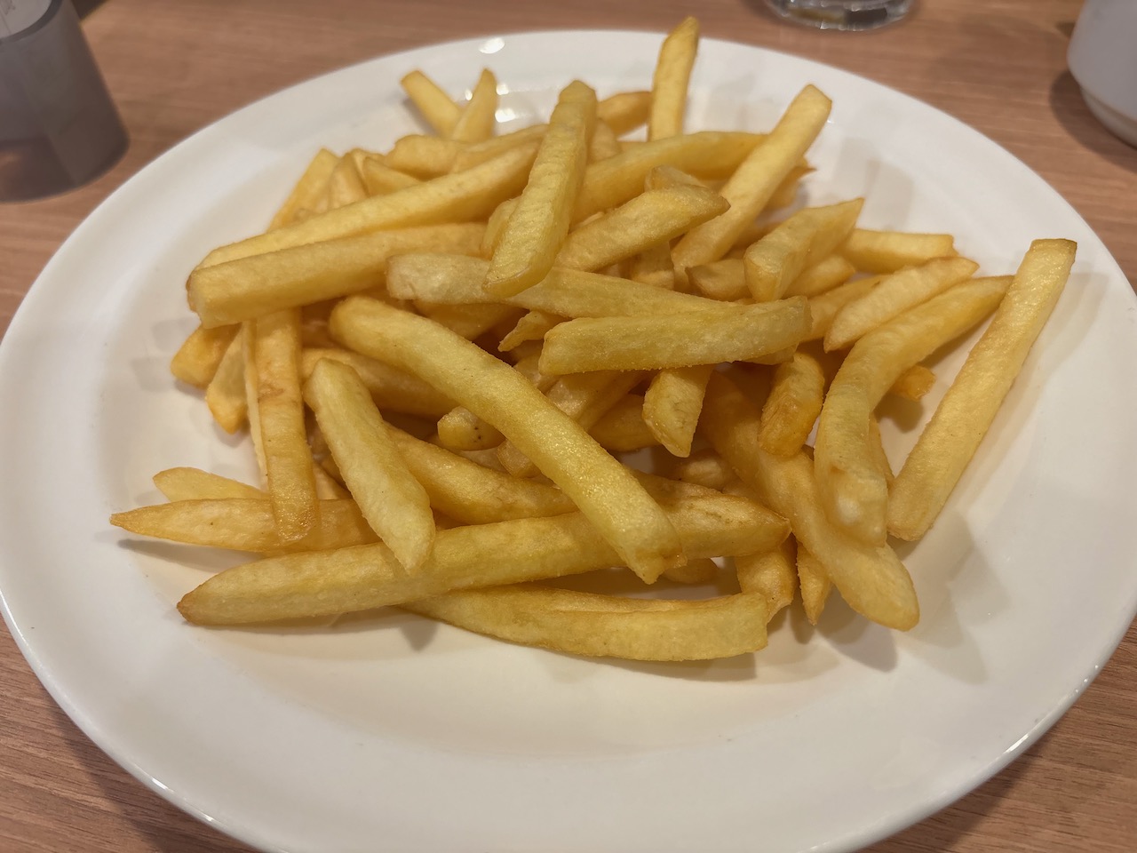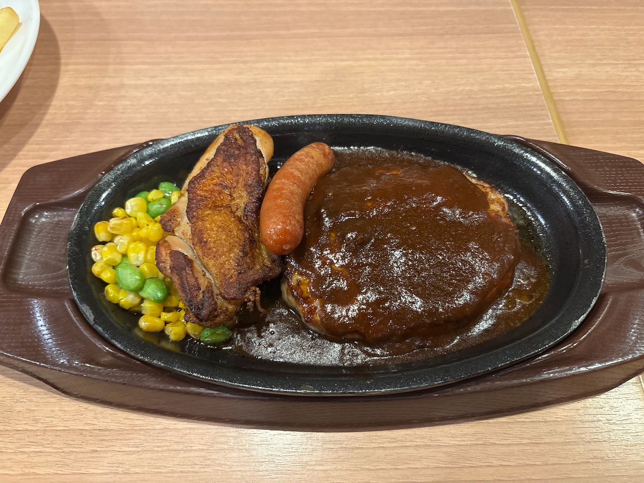 晩ご飯は33%OFF特別クーポンのチラシを握りしめてガストへ。流石に平日の夕方は4〜5組くらいしかお客さんはいません。自分は鉄板ハンバーグミックスグリル、かみさんはチーズINハンバーグ、ライスが付いていないので山盛りポテトフライを追加して、生ビールは2杯になりました。ハンバーグにポテトがついていないとかで、33%OFFじゃなかったら注文することも無いような感じです。