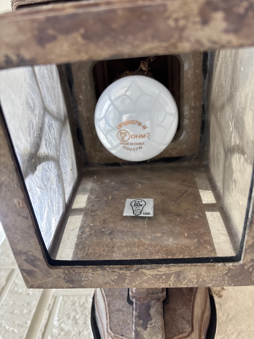 何日か前に玄関灯が点かなくなりました。とりあえず手持ちのLED電球に交換してみましたが調光機能が効いていませんでした。このままで日中は玄関灯のスイッチを消すようにすれば良いのですが、これまでずっとスイッチを入れたままで日中は消灯していた便利さは捨てられません。というわけでAmazonで調光器対応のシリカ電球を入手して交換しました。