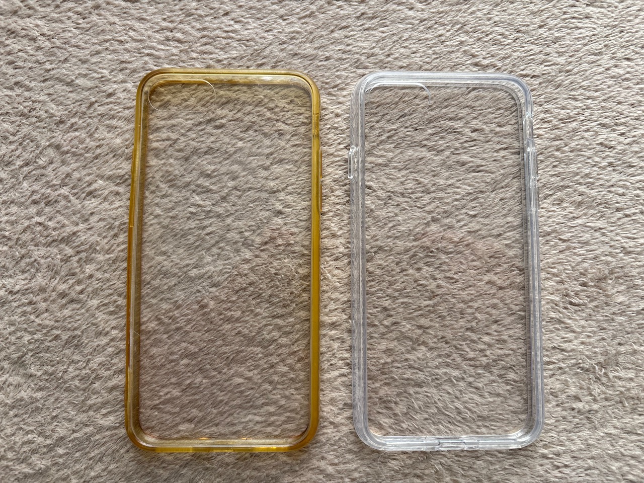 かみさんのiPhoneSE2のケースがだいぶ黄ばんでいて横の部分が切れてきたりしていたので新しいケースに交換しました。これまでのケースと同じ物がAmazonでまだ手に入るのでそれにしましたが、並べてみるとかなり変色しているのがわかります。前回同じものを買ったのは2021年7月だったのですが、商品の謳い文句の「黄ばみなし」はあてにならないようです。