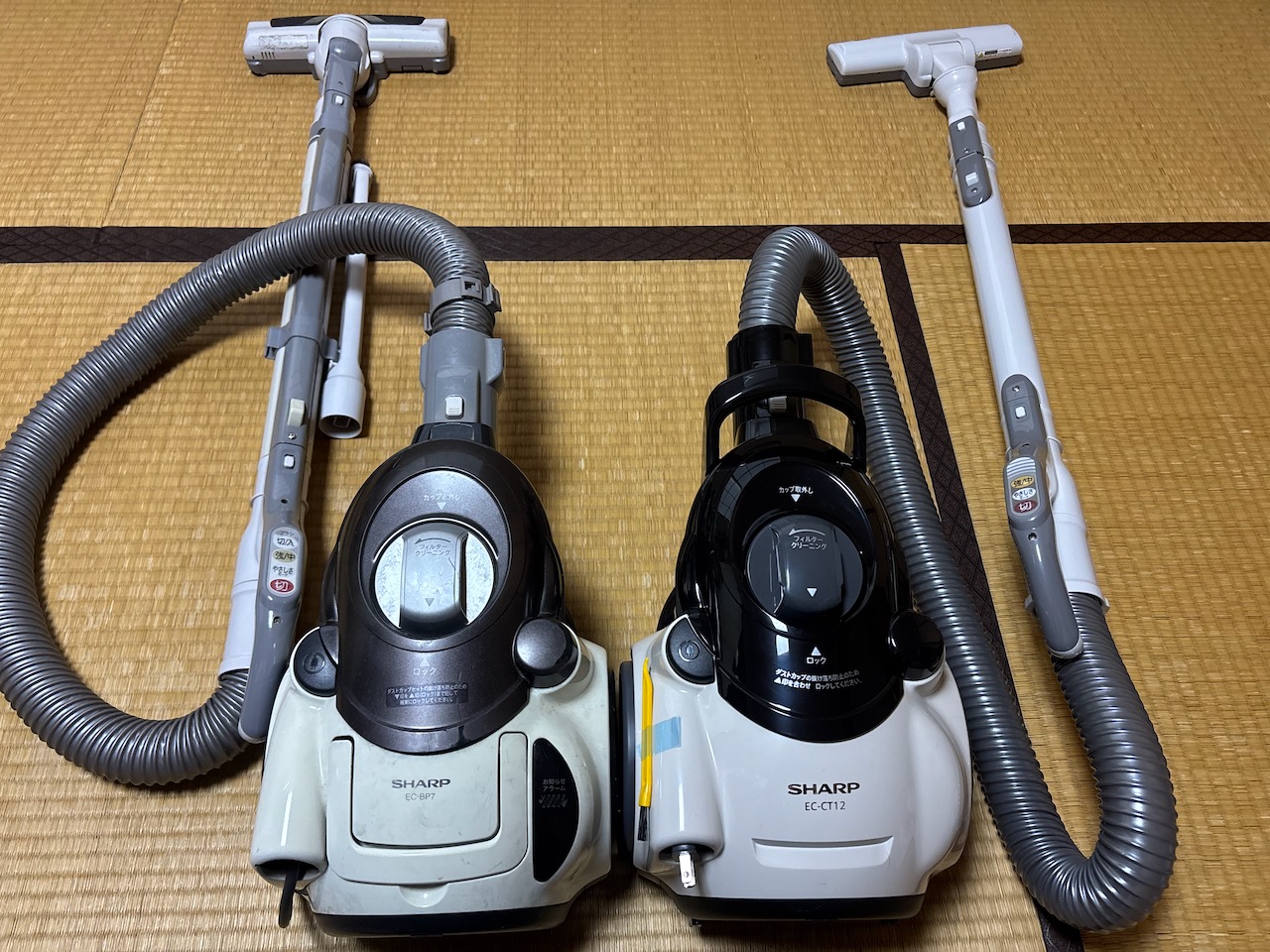 2009年5月に購入した掃除機(シャープEC-BP7)が流石にくたびれてきてしまったので新しい掃除機を買おうということになりました。これまでの掃除機と同様にサイクロン式でキャニスタータイプのお手頃なものを探しているうちに、今のと同じような形のシャープEC-CT12-CをAmazonで見つけました。注文してから二日後の昨日の夕方に届き今朝箱から取り出してみました。本体はほとんど同じような形ですが、吸い込み口のブラシがEC-BP7だとモーターブラシだったのが普通のブラシだったり、アタッチメントのブラシが別売りだったりで16年経ってだいぶコストダウンしているようです。古いホースがそのまま接続できるのですが、吸い込み口のブラシが壊れかかっていることもあって古いホースをそのまま使うのはちょっと意味がなさそうな感じです。