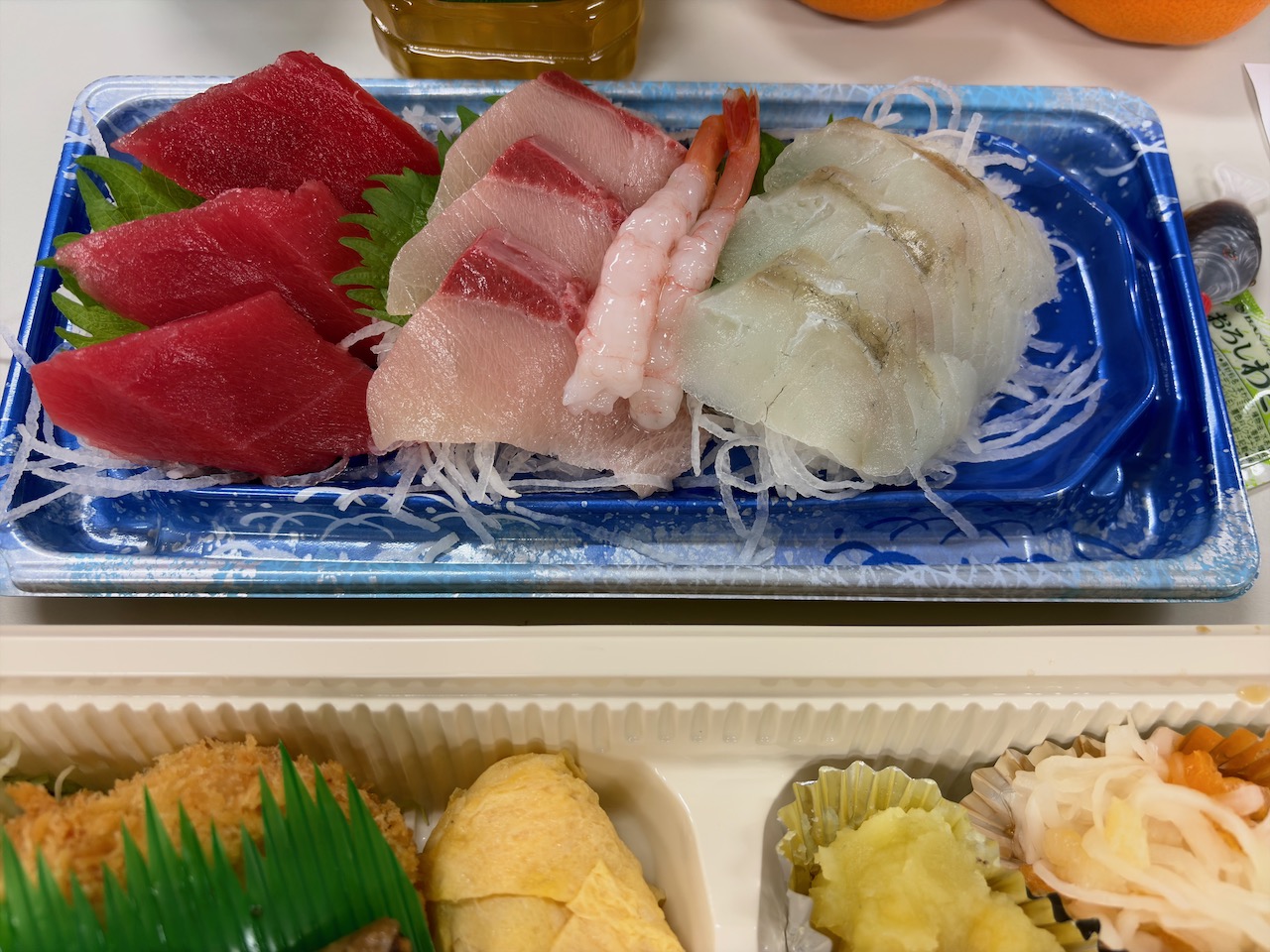 補導委員の新年初会。今回で3回目で弁当は一昨年・去年とほとんど同じ内容ですが微妙に変わっているところもあります。お刺身は一昨年と種類は一緒で枚数が違ってました。乾杯が終わってすぐに弁当と刺身を包んで帰ってしまった人がいてびっくり。自分もそうしたい気持ちもありますが、流石に無理です。