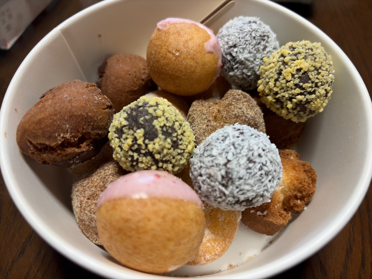 娘2号たちとお昼を食べてからおばあちゃんちに向かう時に天気が良かったので散歩がてらミスタードーナツに寄りました。いつものドーナツポップ 16個入りが並んでいなかったのでどうしようかと思いましたが、店員さんに言うと単品のドーナツポップを2個ずつ入れてくれました。今回でかみさんのアプリに来店スタンプが2つになり、あと2回行けばクーポンがもらえることになります。