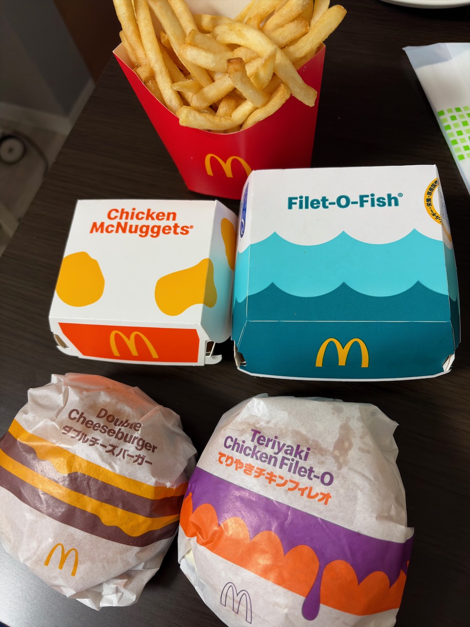 今日のお昼はひるマック。家を出る時にモバイルオーダーしておいて、駐車場に入ったタイミングで注文完了。てりやきチキンフィレオセットで爽健美茶とフライドポテトの組み合わせとダブルチーズバーガーセットでコーヒーとマックナゲットを組み合わせ、フィレオフィッシュは単品で。