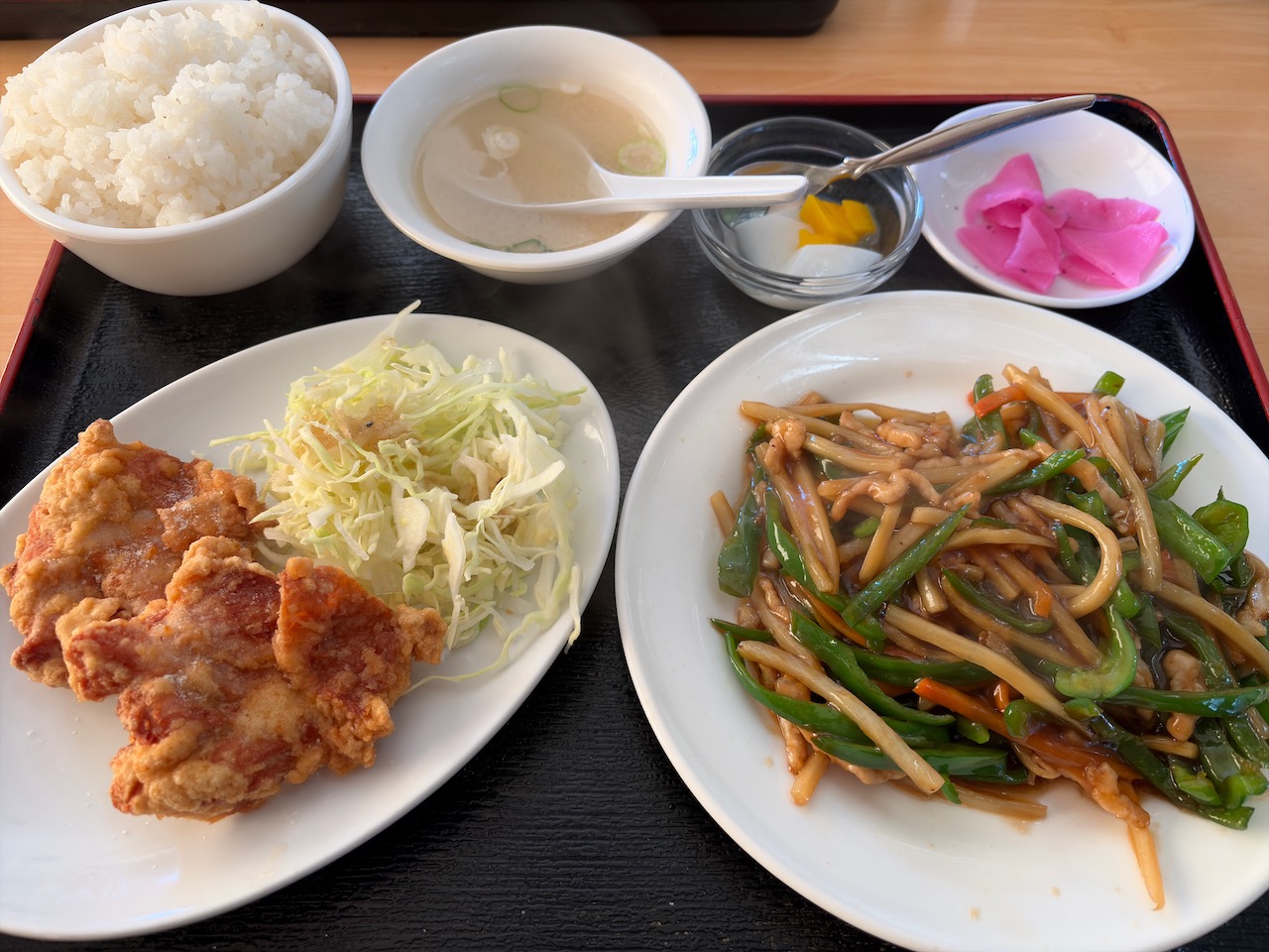 お昼は娘1号たちと多喜屋へ。小上がりに座ろうとしたら団体の予約があるからとテーブル席に。自分はチンジャオロースー定食、かみさんは納豆飯、息子1号たちはニンニクの芽炒め定食と納豆飯。あとから入ってきた団体さんは少年サッカーチームの子供達とコーチ(?)・保護者達でした。