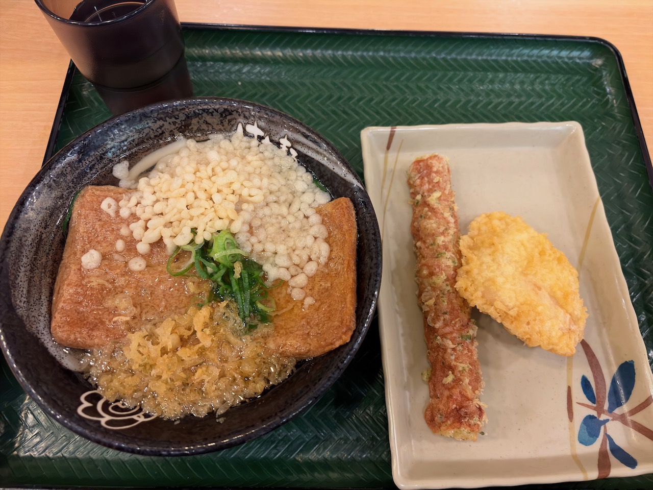 かみさんが宴会だというのでおひとり様晩御飯は久しぶりのはなまるうどんへ。18時ちょっと過ぎに着いてみると駐車場がだいぶ埋まっていました。店内に入ってみると先客は3組くらいで駐車場の車はくら寿司のお客さんの車だったようです。前に女の子と一緒の家族連れが4人いましたが、なかなか注文が決まらずに少し待たされることになりました。その人達が支払いするのを待っていると払おうとしたのにチャージしていなかったとクレジットカードで支払い直していたりで手間取り、レジ打ちの店員さんが年配男性で若い人ならチャチャっとやってくれるところを少しもたついていたりで、いつもの平日夕方だったらささっと注文→天ぷら→レジと流れるはずなのに日曜日の夕方はちょっとストレスがかかりました。ちなみに食べたのはいつものきつねうどん(小)+ちくわの磯辺揚げ&とり天でした。