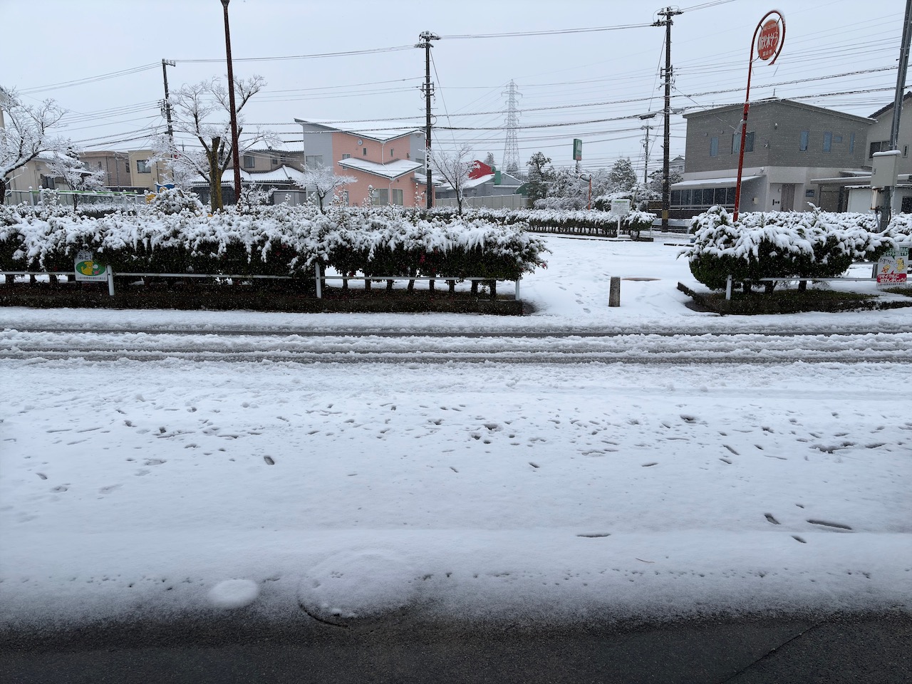 今朝も朝起きたら外が真っ白でした。一昨日と違ってボトボトの雪が降り続いてます。 積雪