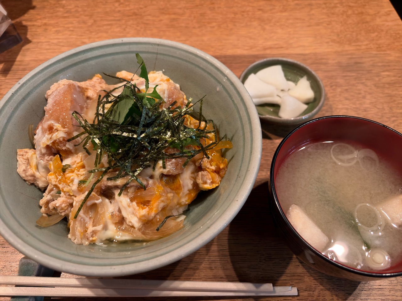 お昼は街中で食べようということにしましたが、第1候補のチェリオがお休みだったので第2候補の新とんかつに入ることにしました。看板には11:30〜となっていて10分くらい前だったのですが、ちょうど暖簾を出していたのでお店に入りました。2人ともカツ丼を頼んで少し待つと、熱々のカツ丼と味噌汁が運ばれて来ました。ここに入るのは2023年7月以来なのですが、その時にもカツ丼を頼んで熱々状態に苦労していました。連休前の日とはいえ平日の昼だったのですがあとから続々とお客さんが入って来て満員になっていました。もしかしたら自分たちと同様に隣のチェリオがお休みだったからここに入って来た人が多かったのかもしれません。