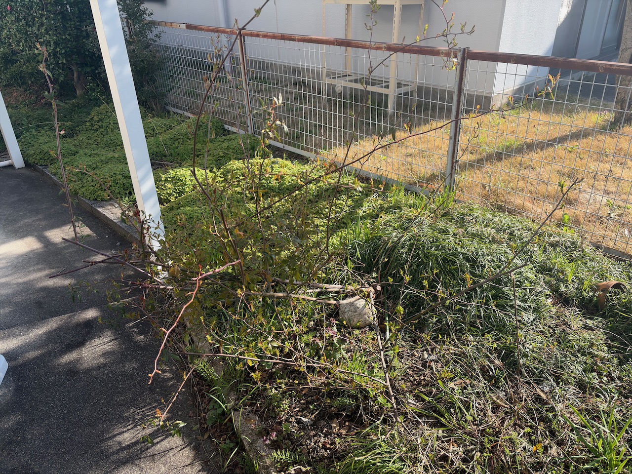 日記・コラム・つぶやき モッコウバラ植え替え 2026 / 3 / 27 NK コメントする 前に植木鉢から地面に植え替えたモッコウバラ。根元から斜めに枝が伸びているので雪の重みのため通り道を塞ぐような形になっていました。フェンス側に50cmほど移動させてみましたが、この先どうなるのか。 植え替え前 植え替え後 関連